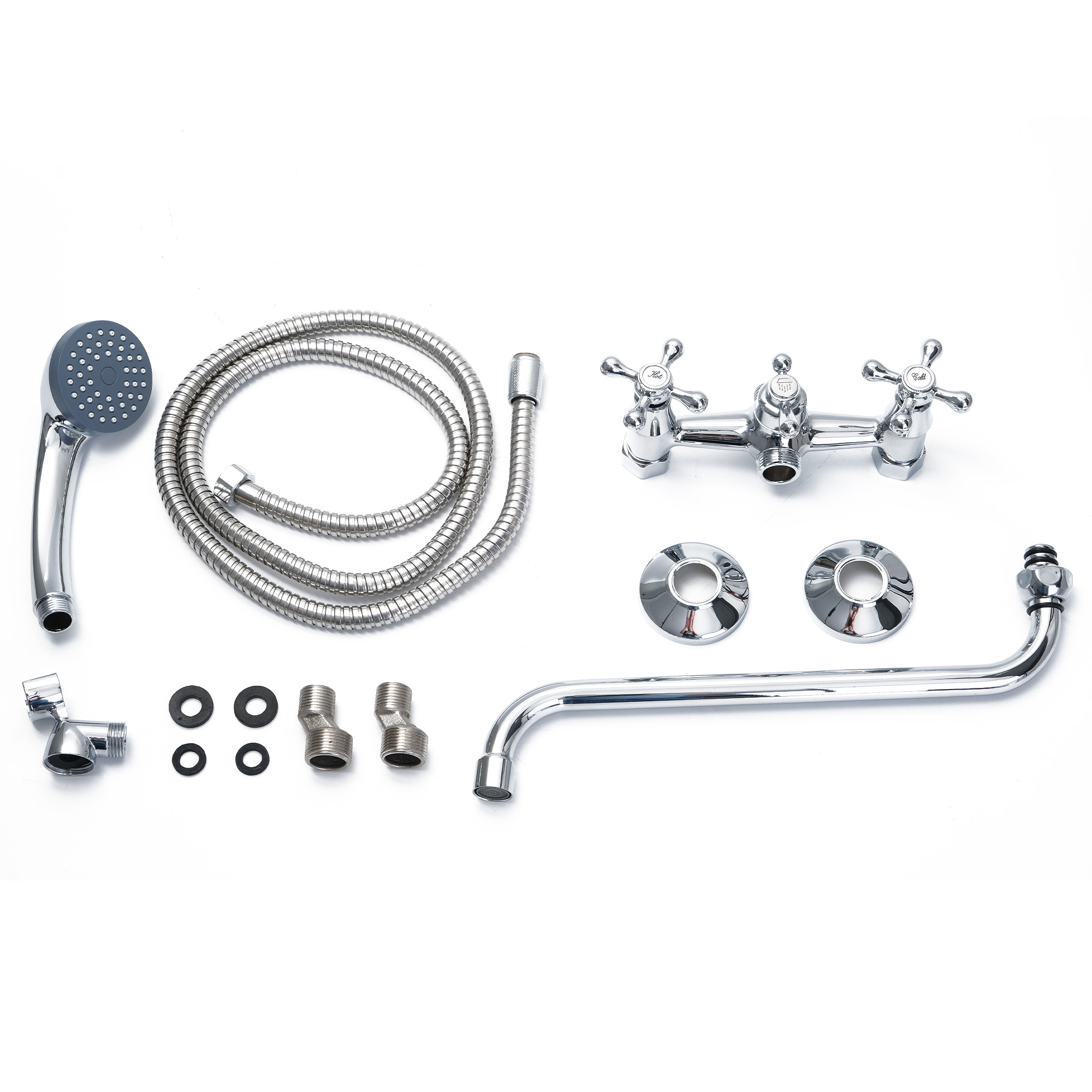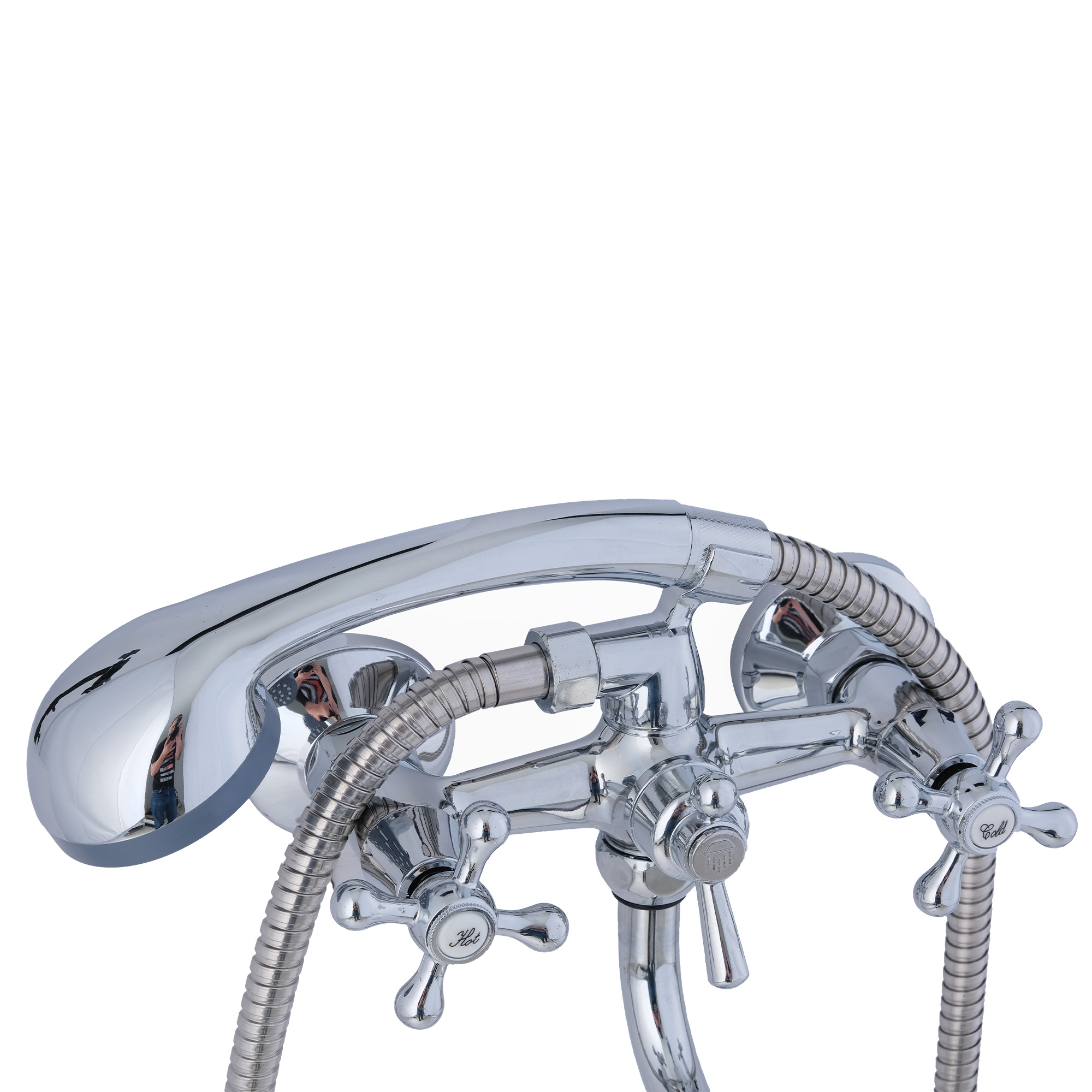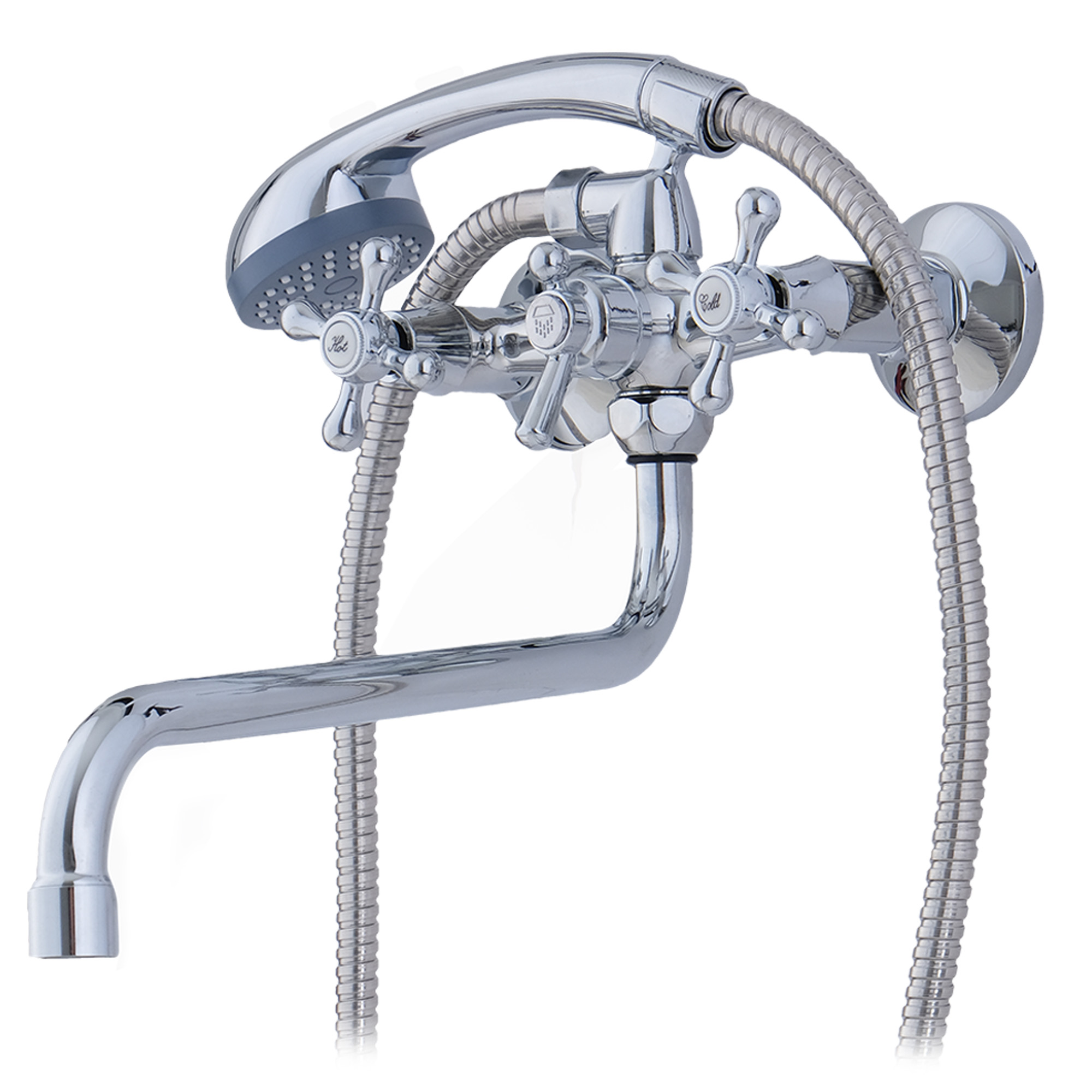 Двухвентильный смеситель для ванной из коллекции Vincent. Корпус из латуни, душевая лейка. Крепление на эксцентриках, присоединительный размер - G1/2.