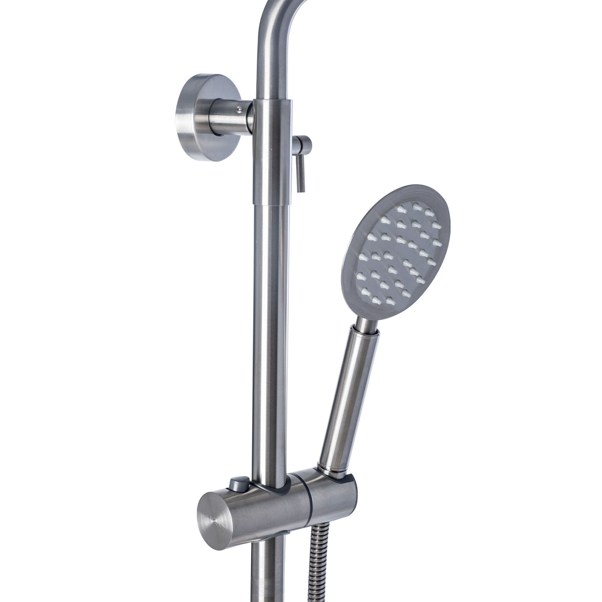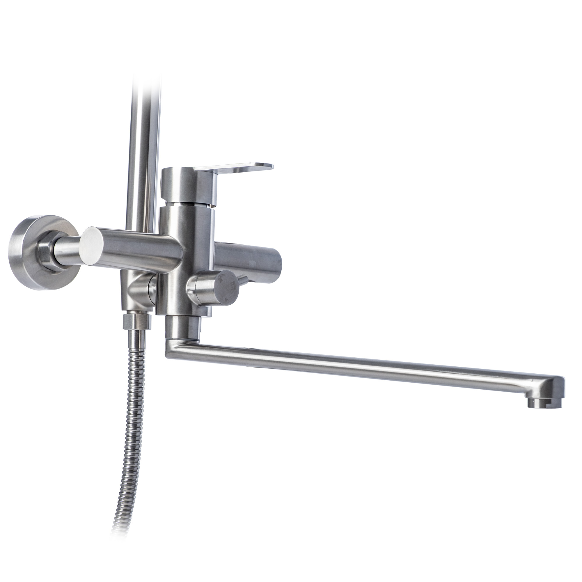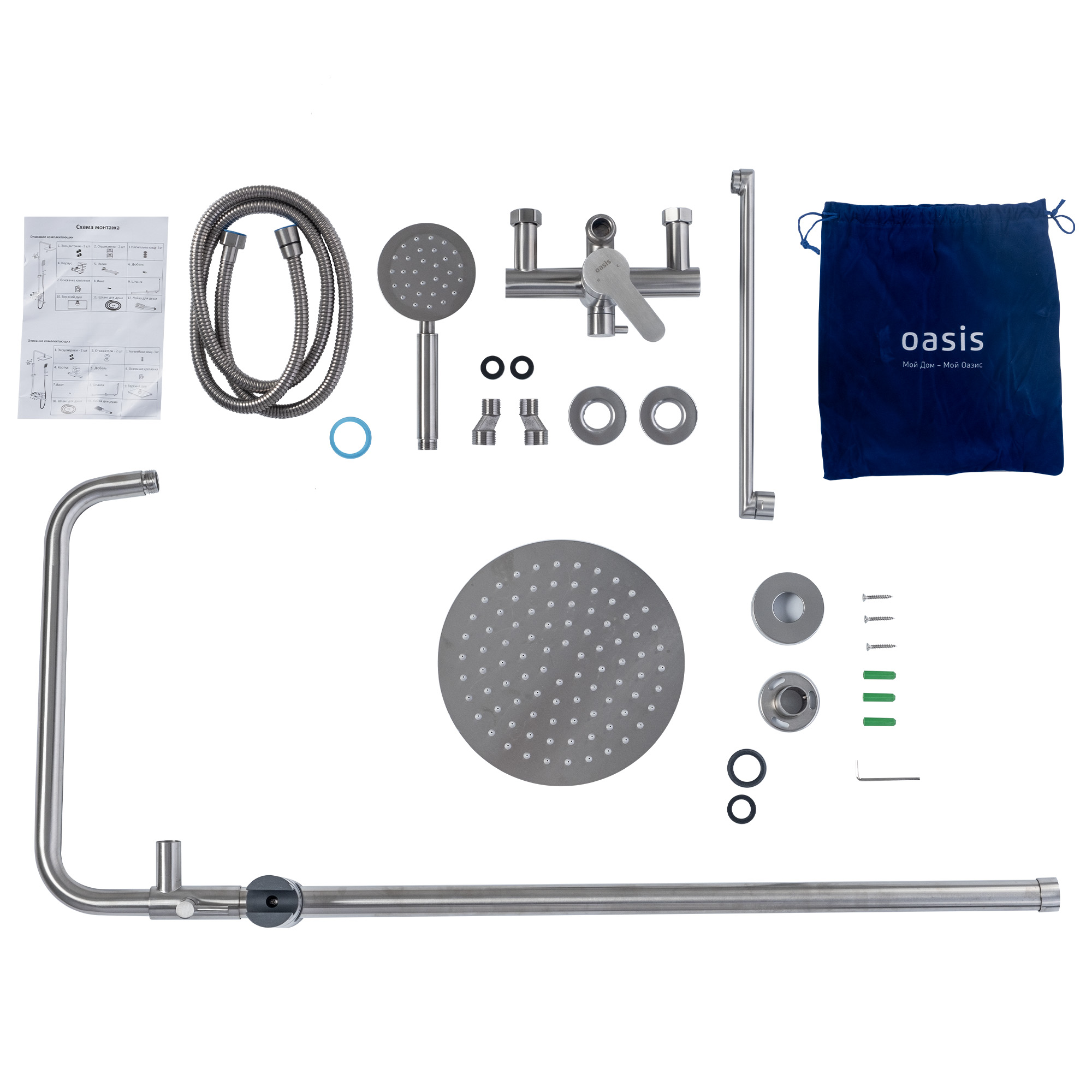 Душевая стойка в эффектном дизайне из коллекции Caravaggio. Корпус из нержавеющей стали. Крепление на эксцентиках, присоединительный размер - G1/2.
